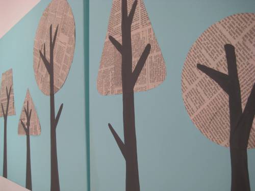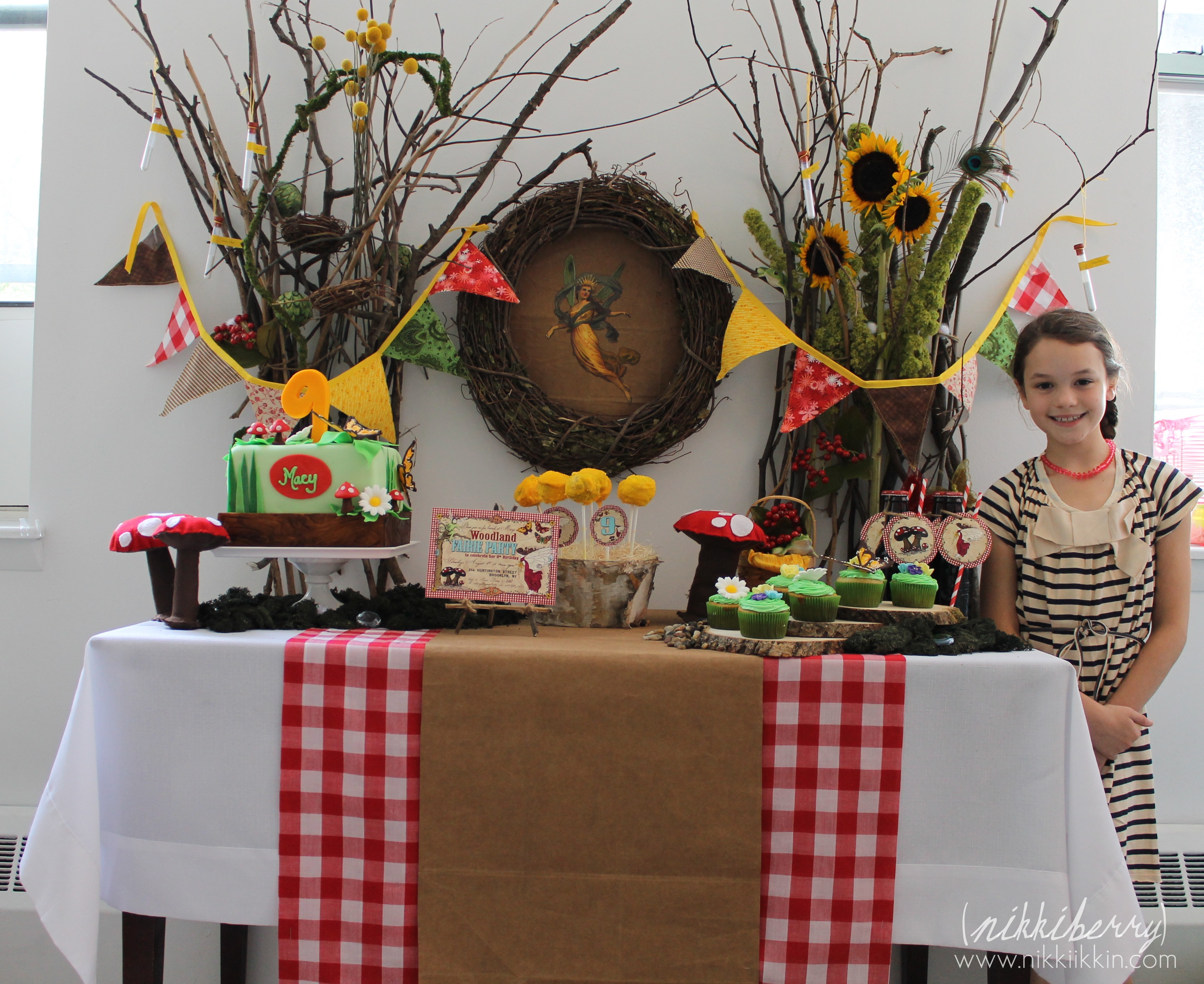 I had more guest (and more decorations) than one table could hold, so the littlest kids at our party had their own table. Here I used more Dennison inspired imagery. I created a paper chandelier right from the instructions in a Bogie Book and made tussie mussies to hold candy for the the kids to take home.